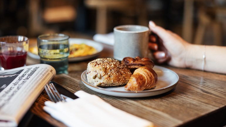 Börja dagen med en god frukost på 71 Nyhavn Hotel, där en inbjudande buffé med fokus på ekologi, smak och hög kvalitet väntar dig. Här bjuds du på nybakat bröd, färsk frukt, danska specialiteter och små överraskningar som förgyller morgonen lite extra.